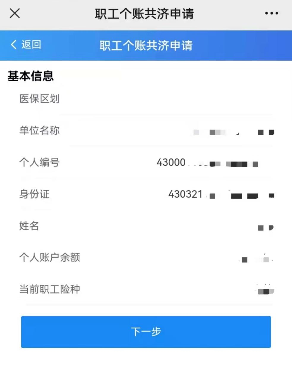 第二步:確認(rèn)參保信息,在個(gè)人賬戶(hù)有余額且參保狀態(tài)正常的情況下,點(diǎn)擊下一步。